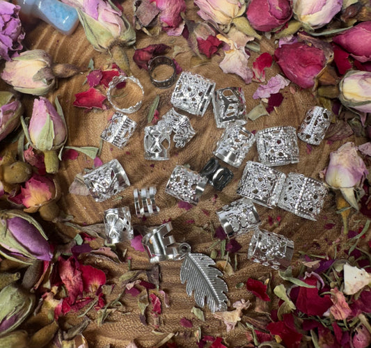 Silver Dreadlock Cuff Set 20 Random Silver Beads / Cuffs