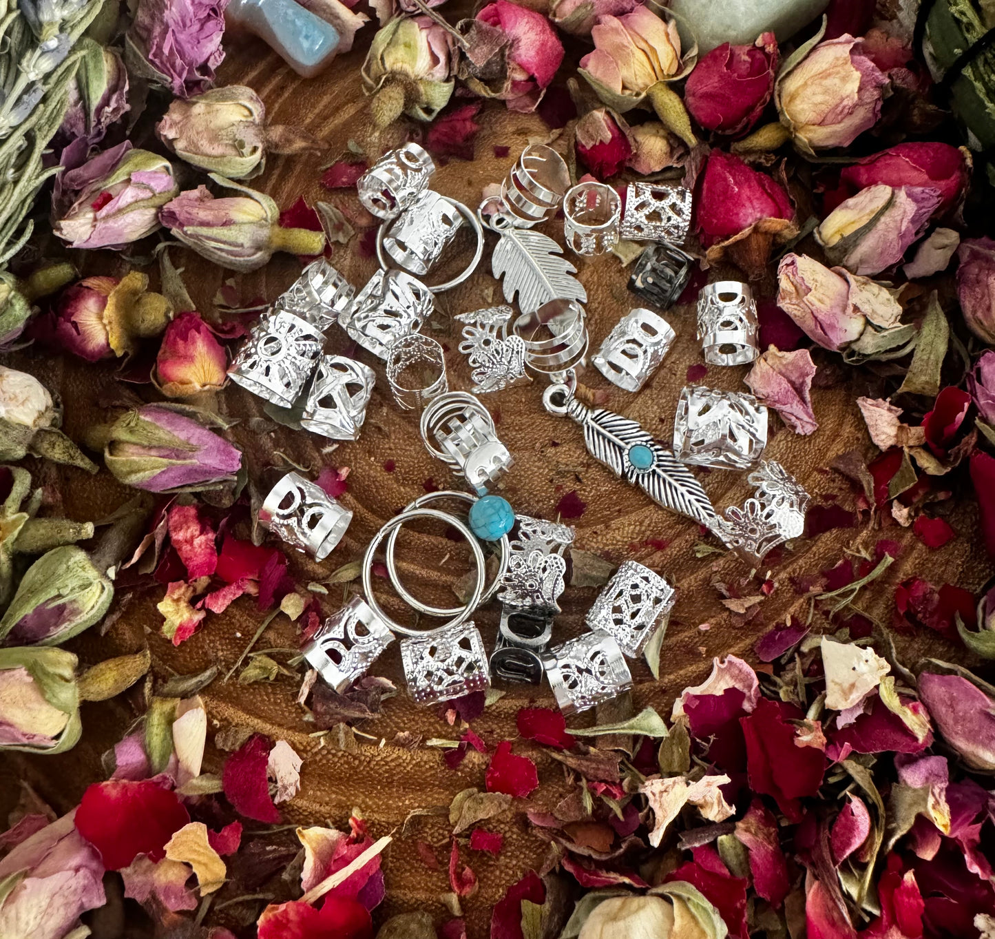 Silver Dreadlock Cuff Set 30 Random Silver Beads / Cuffs