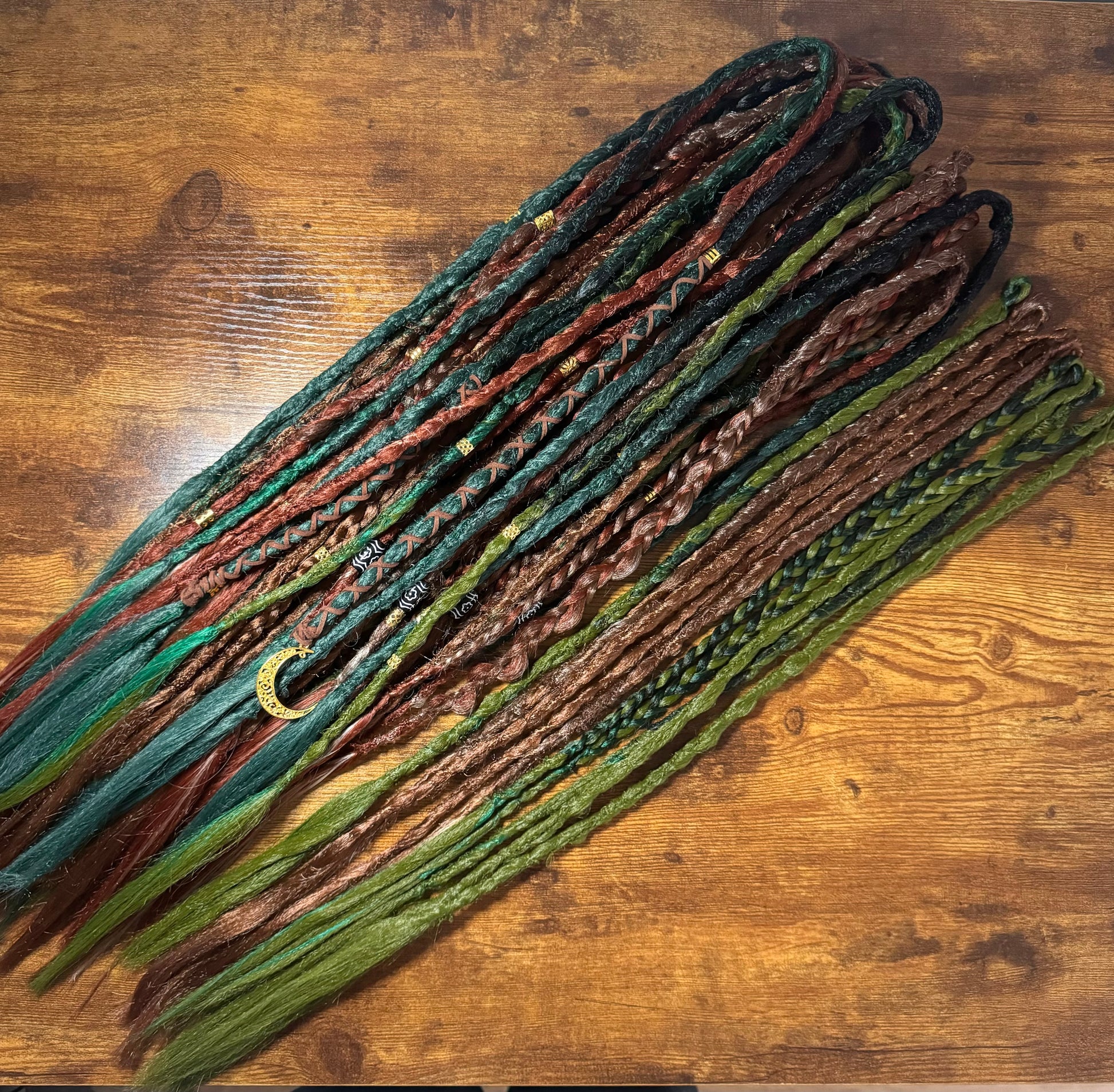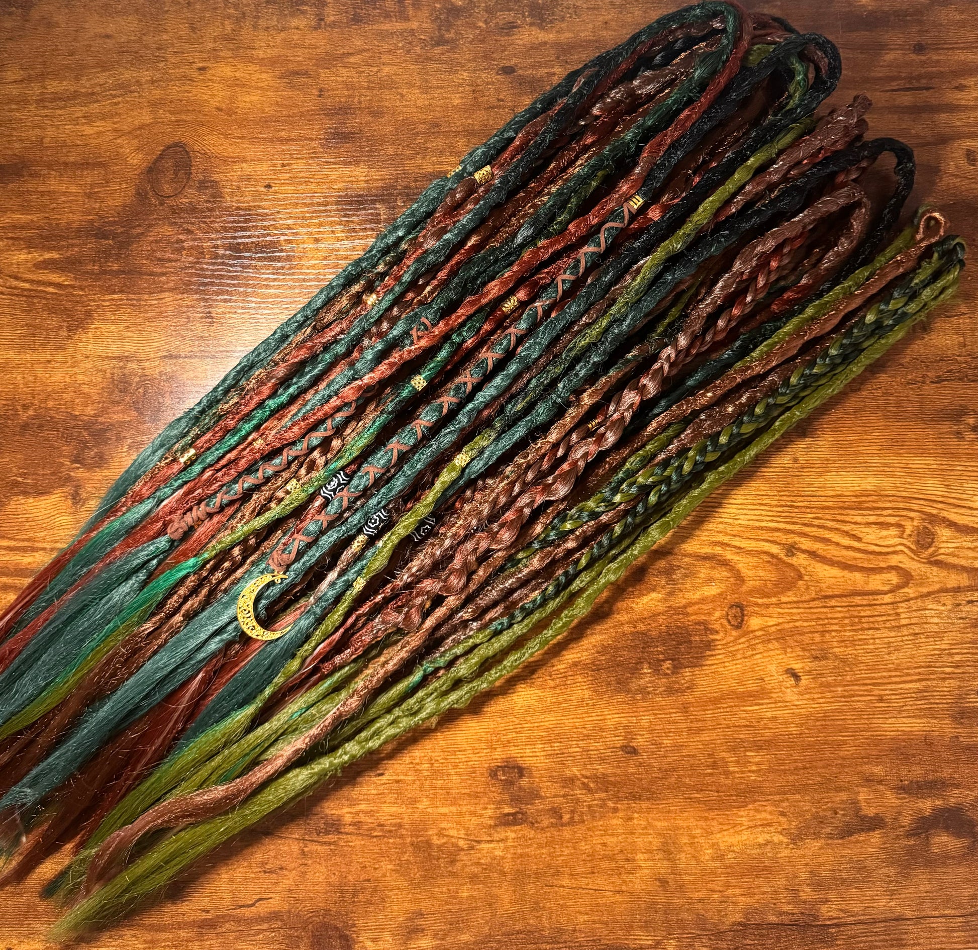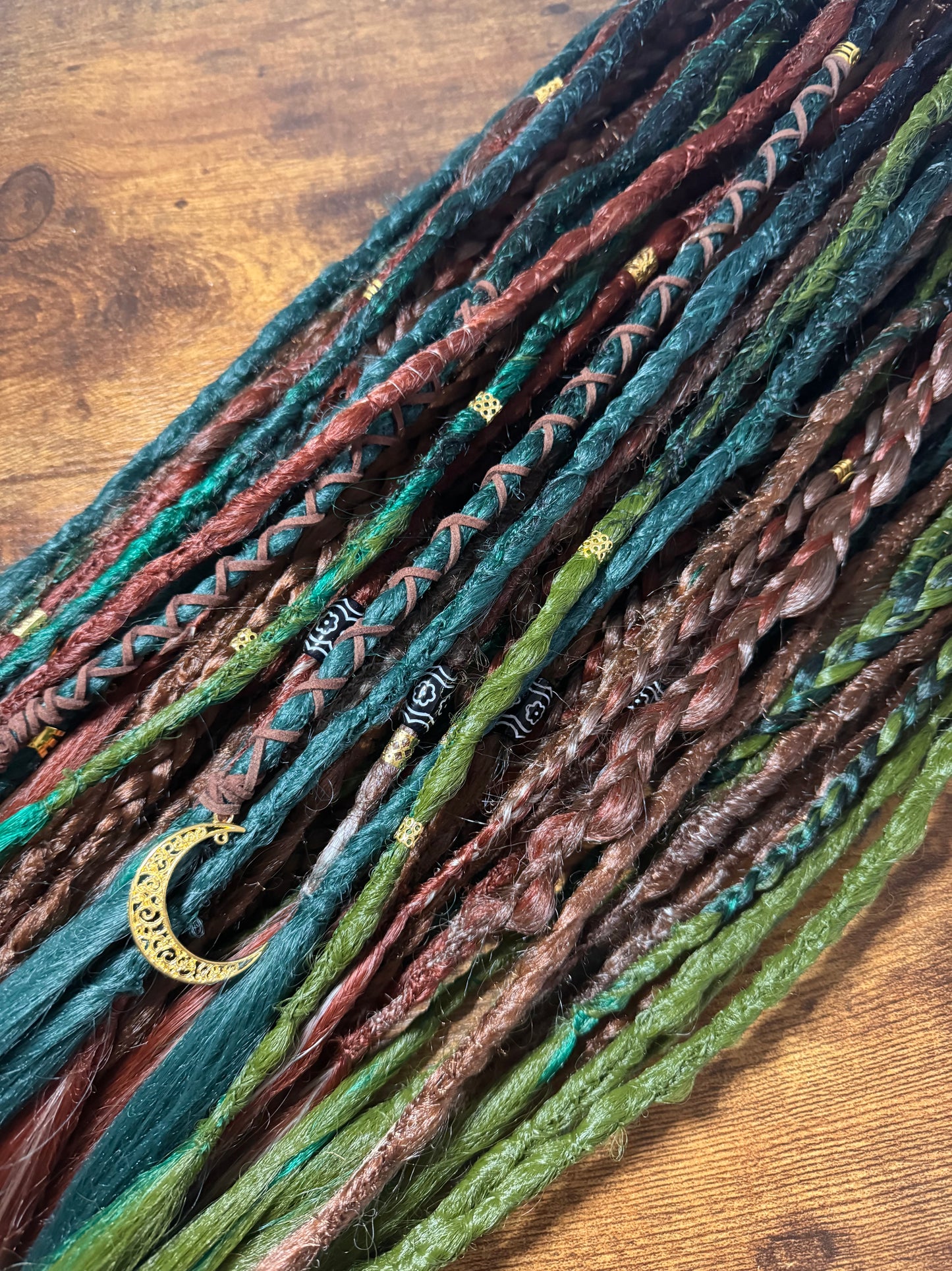 Handmade by me, The dreads are a mix of crochet, twisted, and plaited styles, ensuring a unique and eye-catching look. Made from high-quality synthetic hair, these dreads are built to last.