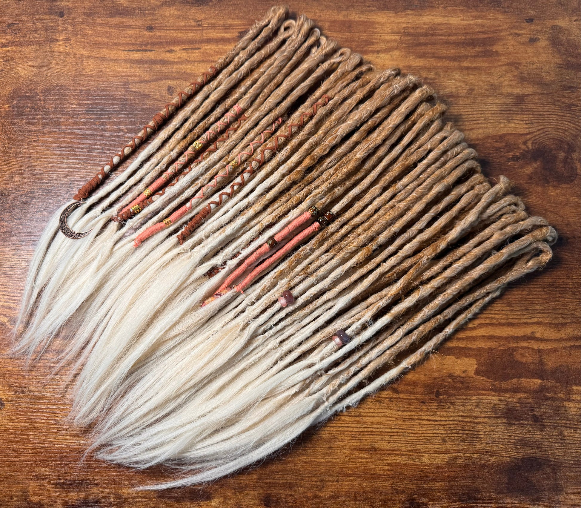 Handmade by me, The dreads are a mix of crochet, twisted, and plaited styles, ensuring a unique and eye-catching look. Made from high-quality synthetic hair, these dreads are built to last.