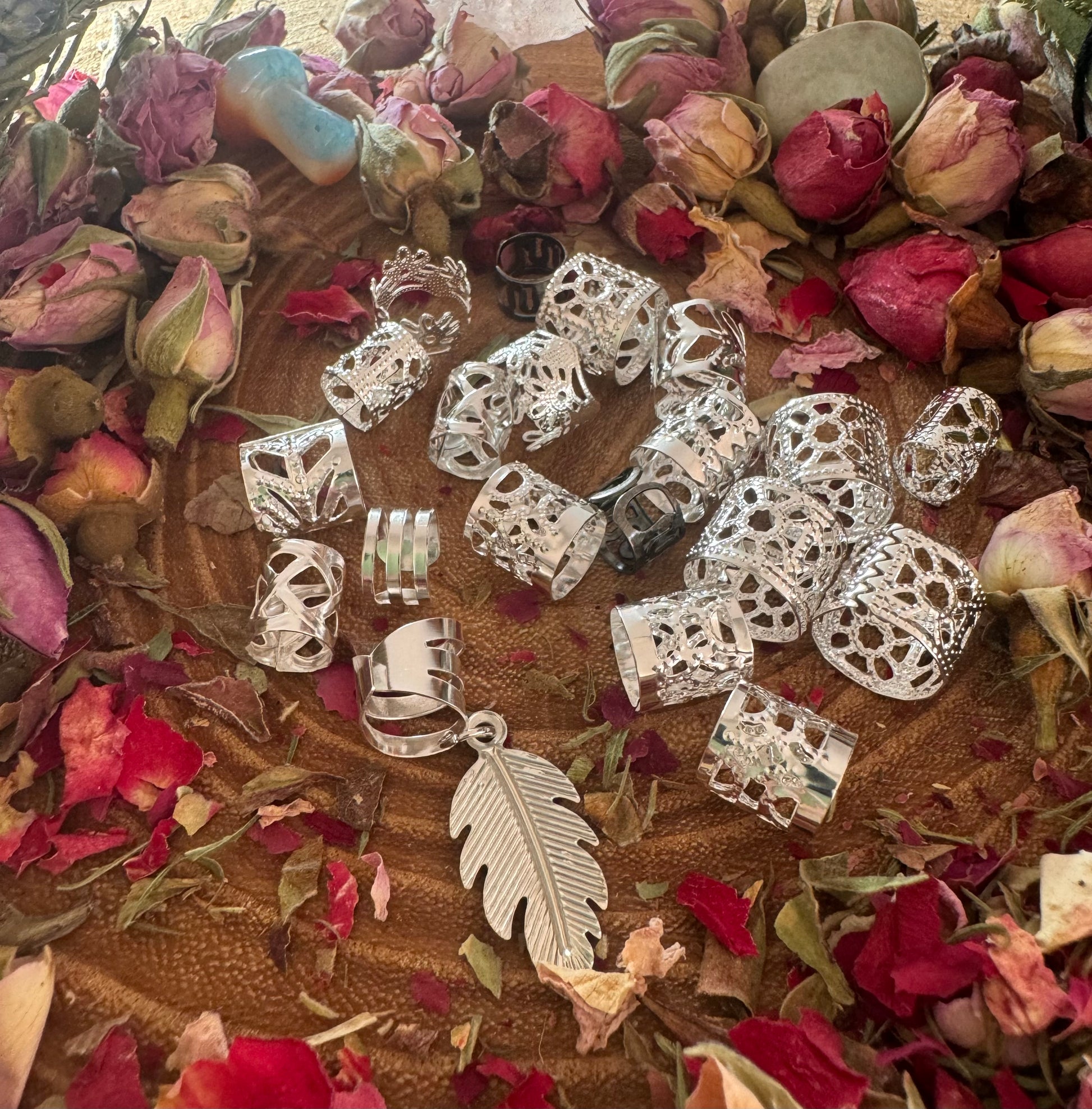 Silver Dreadlock Cuff Set 20 Random Silver Beads / Cuffs